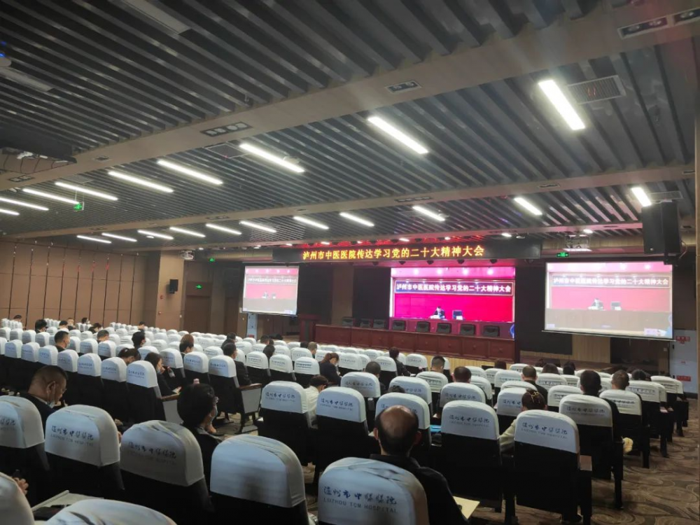 2022年11月2日下午,瀘州市中醫(yī)醫(yī)院召開專題會(huì)議,傳達(dá)學(xué)習(xí)黨的二十大精神,安排部署醫(yī)院宣傳貫徹黨的二十大精神工作。會(huì)議以視頻會(huì)議形式召開,主會(huì)場設(shè)在大山坪院區(qū)門診11樓學(xué)術(shù)報(bào)告廳,城南院區(qū)設(shè)立分會(huì)場。醫(yī)院領(lǐng)導(dǎo)班子成員、全院黨員干部參加會(huì)議。醫(yī)院黨委書記鄭海三領(lǐng)學(xué)黨的二十大報(bào)告精神以及傳達(dá)省、市學(xué)習(xí)黨的二十大精神大會(huì)精神,醫(yī)院黨委副書記、院長金忠主持會(huì)議。
