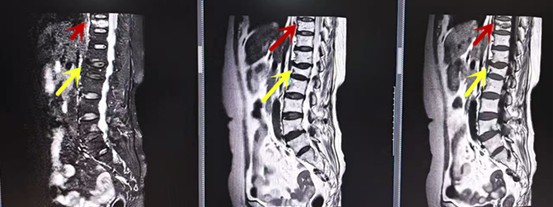 紅色箭頭提示新鮮骨折,黃色箭頭提示陳舊性骨折