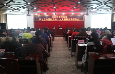 為深入學(xué)習(xí)宣傳貫徹黨的十九大精神,深化對黨的十九大精神的理解和認識,2017年12月13日下午,我院在門診11樓學(xué)術(shù)廳召開學(xué)習(xí)宣傳貫徹十九大精神宣講報告會,全院中層及以上干部、全體黨員、入黨積極分子參加了會議。