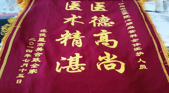 7月15日患者范俊星全家為內(nèi)一科醫(yī)護人員送來錦旗一面,感謝他們的悉心照顧。