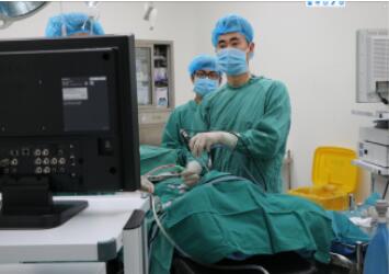 眼耳鼻喉科主任畢旭新(中)正在給患者進行治療手術(shù)